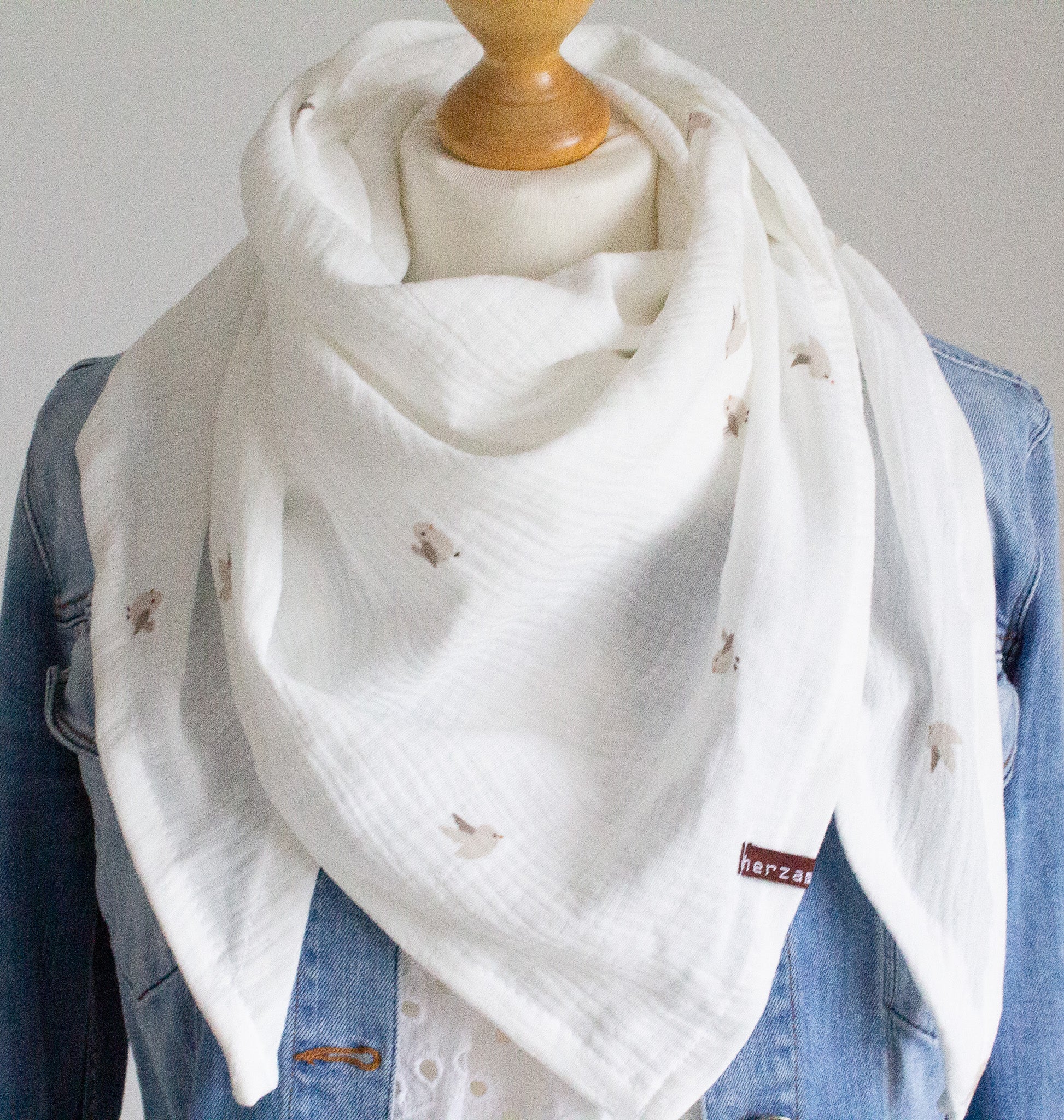 Die Tücher bestehen aus 100% leichten Baumwoll-Musselinstoff. Sie sind dadurch sehr weich und geben auf der Haut ein angenehmes Tragegefühl.